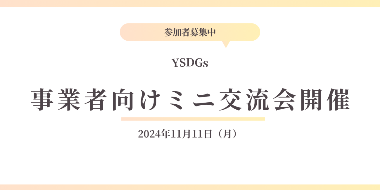 この度、ヨコハマSDGsデザインセンターにて、事業者向けミニ交流会を実施する運びとなりました。 本交流会は、SDGsに関連するユニークな取り組みをされている方にセミナーを行っていただきながら、参加者同士が繋がりを作れる場 … 続きを読む 【11/11(月)18時】YSDCミニ交流会開催のお知らせ