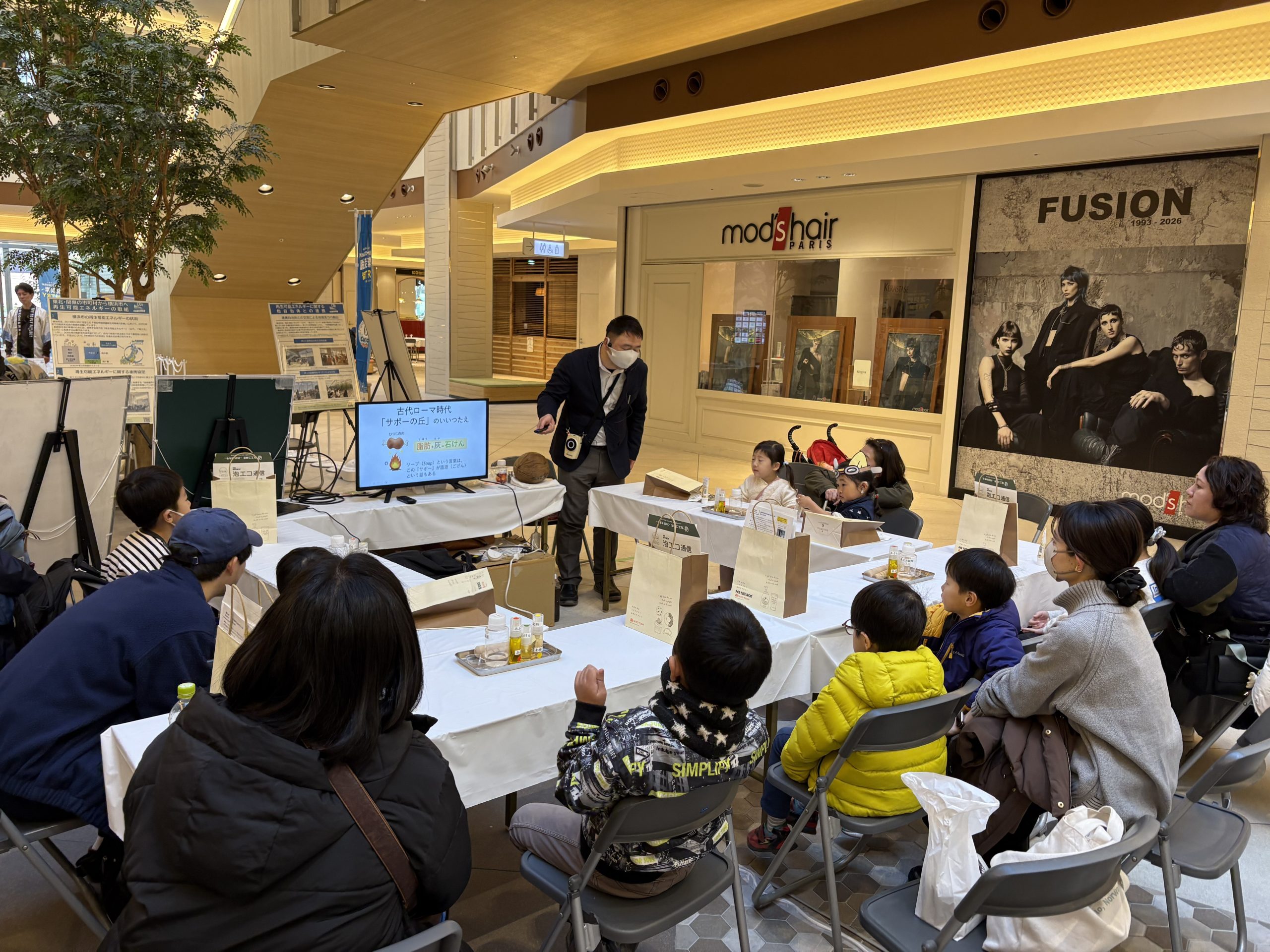 みなとみらい本町小学校の4年生、5年生約100名が当日授業に参加してくれました。